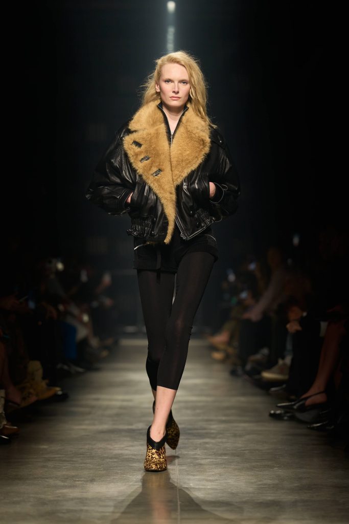 На подиуме лосины стали неотъемлемой частью коллекций большинства дизайнеров. К слову, они даже готовы экспериментировать с ними, используя различные материалы вроде трикотажа или кожи и делая акценты на принтах – например, в полоску, в клетку или просто отдавая предпочтение ярким цветам. Отдельного внимания, само собой, заслуживает стайлинг. Стилисты, дизайнеры и модные инфлюенсеры все чаще используют их в своих образах, сочетая с укороченными куртками и шубами, кардиганами и свитерами и, конечно, с мини-платьями.