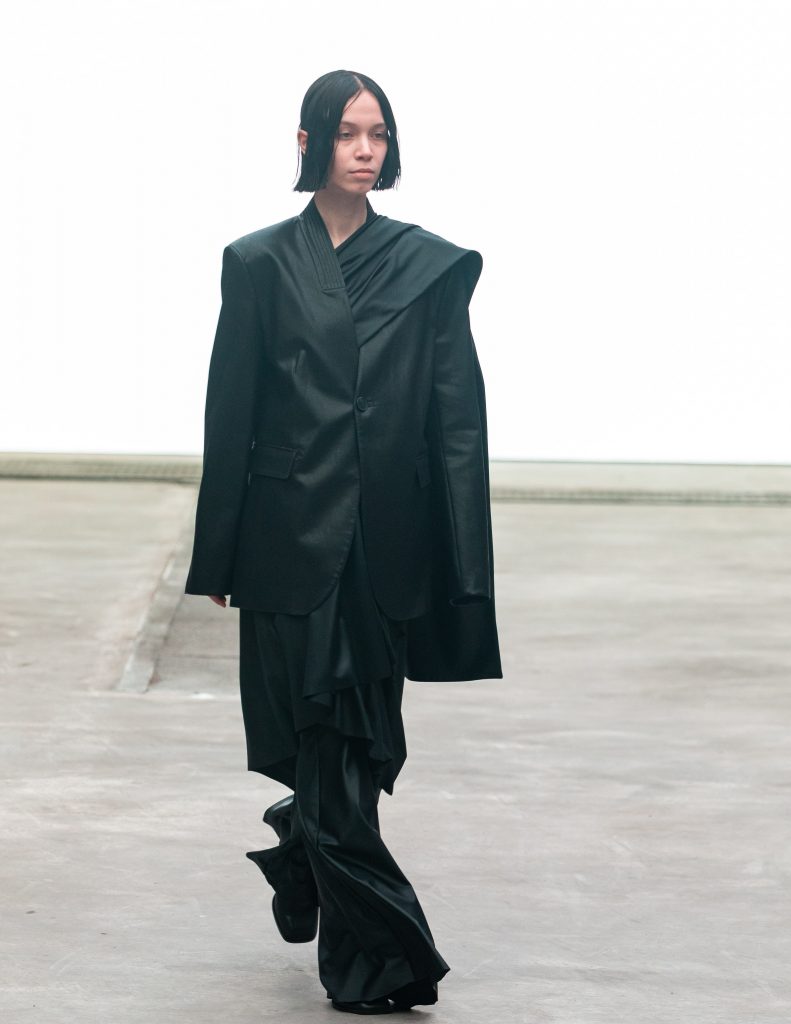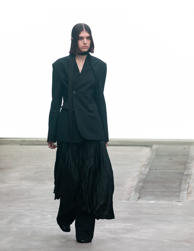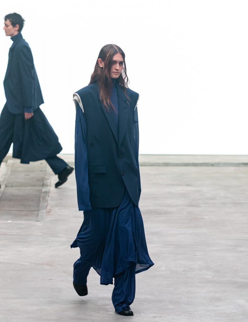С нашествием тенденций нулевых возвращение одного из самых спорных сочетаний – платья с брюками – оставалось лишь вопросом времени. Нежелание считывать тандем в его привычном амплуа отчетливо прослеживалось в весенне-летних коллекциях 2022 Louis Vuitton, Peter Do и Isabel Marant. Дизайнеры как будто «переигрывали» сочетание, рифмуя брюки с платьями-рубашками с расстегнутыми к низу пуговицами, создавая некий эффект пальто. Но по законам мироздания круг всегда замыкается, оттого ровно через год нерушимый союз все-таки вернулся в его традиционном звучании. Хотя, все же не в таком спорном.