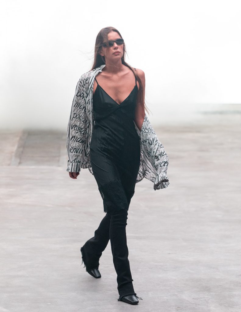 Наглядное доказательство в последние дни августа предоставила Тесса Томпсон в Венеции, которая надела под прозрачное платье Victoria Beckham черные свободные брюки. И, конечно, не забываем про, не побоимся этого слова, грандиозный показ Ushatava в память близкому другу и вдохновителю бренда Дачи Зухбая, состоявшийся 1 сентября. Модели появлялись на подиуме не только в многослойных комбинациях, состоящих из жакетов, длинных юбок и брюк, но и в платьях в бельевом стиле в комплекте с джинсами – отличный пример, как классический тандем из нулевых можно обыграть на лаконичный лад.