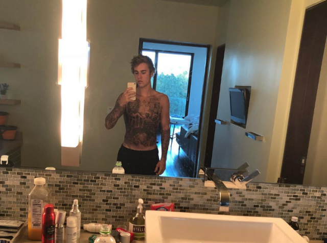 А теперь тату на теле Бибера даже посчитать будет очень сложно – сегодня он поделился с подписчиками фото своего голого торса, который весь закрашен чернилами настолько, что трудно понять: это одна большая татуировка или множество разных.