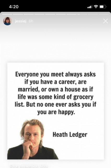 А также поделилась цитатой: «Каждый, с кем вы встречаетесь, неизменно интересуется вашей карьерой, семейным положением или наличием дома, как будто жизнь – это что-то типа списка покупок. Однако никто никогда не спрашивает, счастливы ли вы».