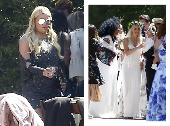 В воскресенье Джессика Симпсон (36) и ее младшая сестра Эшли (32) были почетными гостями на свадьбе своих друзей – Росса Несса (30), сына легендарный Дайаны Росс (73), и Кимберли Райан в Калифорнии. Джессика просто была в числе гостей, а Эшли досталась более интересная роль подружки невесты. Но все внимание было приковано все-таки к старшей Симпсон – кажется, она ждет третьего ребенка. В коротком синем платье с блестками очень хорошо был виден округлившийся животик певицы.