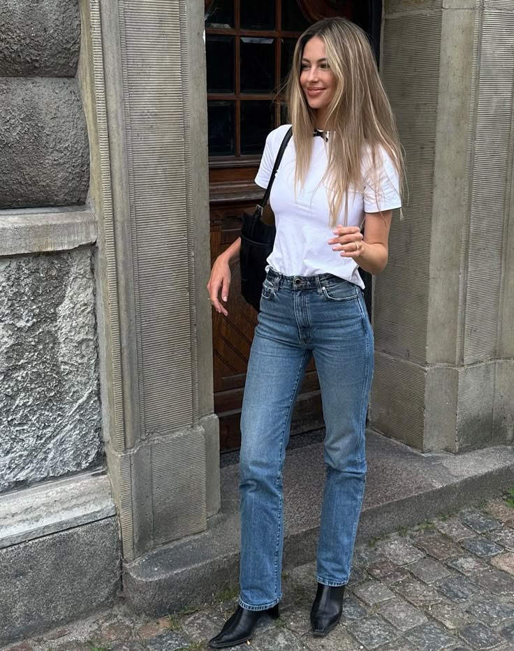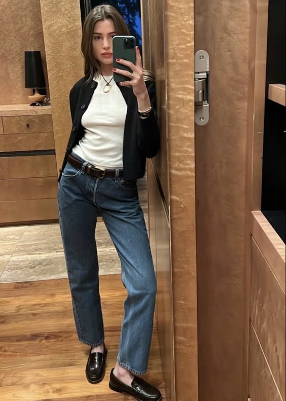 Главное достоинство джинсов-сигарет в том, что они делают образ супермодным без лишних усилий. В них легко выглядеть стильно, даже если ты просто надела базовую футболку и выбежала за кофе. Они прекрасно ладят с лоферами, балетками, кедами и каблуками, а в паре с мини-жакетом или кожаной курткой моментально превращаются в универсальную униформу на каждый день. У тренда есть и приятный бонус – ностальгия. Джинсы-сигареты мягко отсылают к эстетике 80-х и 90-х, когда их главным амбассадором была принцесса Диана.
