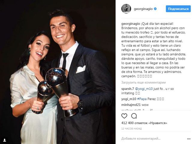 Сегодня Джорджина написала трогательное сообщение Криштиану в своем Instagram: «Твоя жизнь футбол, и это четко видно на поле. Продолжай быть таким, всегда стремиться к своей цели, а я буду рядом с тобой: поддерживать тебя, дарить любовь, спокойствие и все, что тебе нужно, когда ты будешь возвращаться домой. В хорошие и плохие времена, потому что по-другому быть не может. Мы любим тебя и восхищаемся тобой, чемпион».