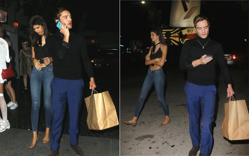 Возможно, именно поэтому в ночь с 30 на 31 октября, когда звезды примеряли самые разные наряды, Эд решил остаться в повседневной одежде и появился у отеля Шато Мармон в Лос-Анджелесе в простой черной водолазке, синих брюках и замшевых коричневых ботинках. Вместе с актером на улице появилась и таинственная красивая брюнетка, одетая в черный топ, джинсы и балетки.
