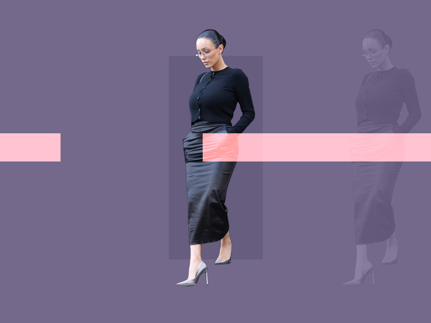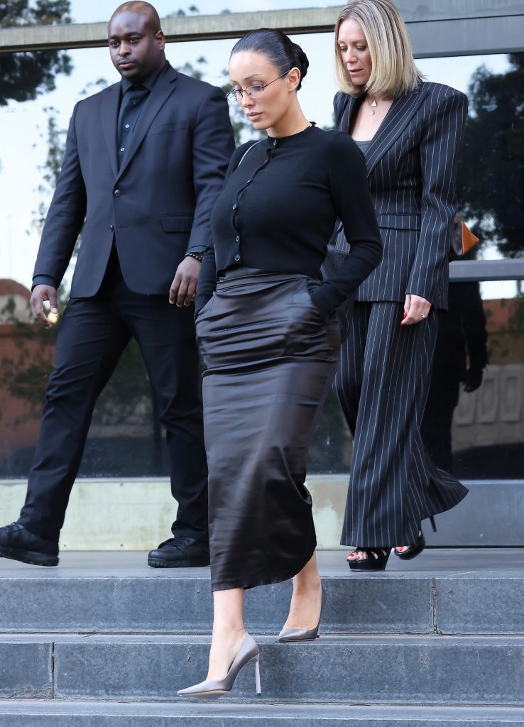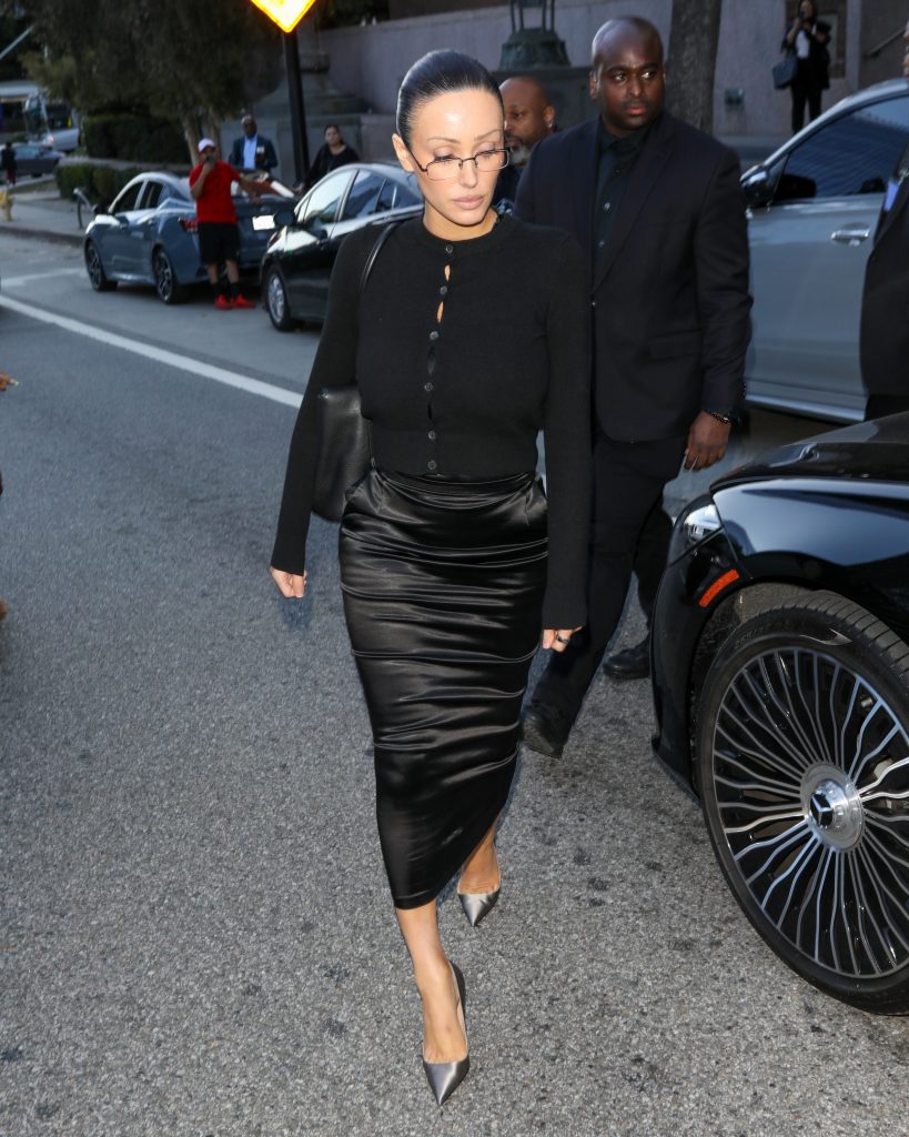 Еще неделю назад она гуляла по Лос-Анджелесу в мини-юбке и бюстгальтере, а уже сегодня дает показания в суде – такая вот у Бьянки Цензори насыщенная жизнь. Самое удивительное, конечно, в этом процессе – образ Бьянки, который на этот раз оказался более чем скромным на фоне ее предыдущих выходов. Та самая учительница английского из параллели (так ее окрестили в социальных сетях) появилась на заседании в черном кардигане на пуговицах, напряжение которых чувствуется через экран, и черной атласной юбке, внимание, ниже колена. Но Бьянка не была бы собой, если бы не зализала волосы назад, сделав аккуратный пучок, дополнив образ очками офисной сирены. Кажется, примерно такие кадры со съемок «Дьявол носит Prada 2» мы и ожидали увидеть.