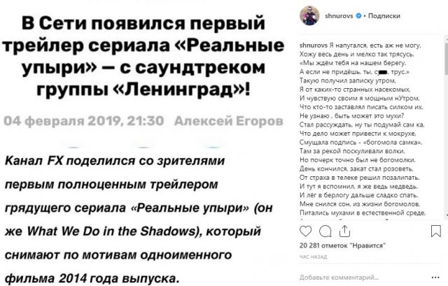 Прокомментировал ситуацию актер тоже в стихах, написав: