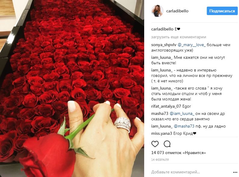 Позже Егор заявил: с Карлой они просто дружат. «Мы с ней общаемся, дружим. Она классный собеседник. Учит меня английскому и дает комментарии по жизни. Круто, когда есть люди, у которых можно чему-то поучиться. Назвать это романом трудно», — сказал он. Но вот фотографии в Instagram говорят сами за себя.