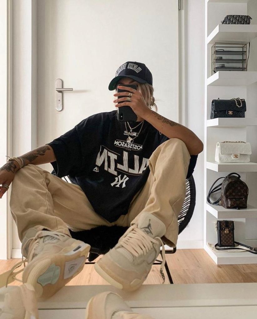 Переходим к самой важной части! Запомни: в рэп-тусовке в первую очередь смотрят на твои кроссовки. Так что в «суперстарах» там лучше не появляться. А вот Nike Air Jordan 1 купить стоит. Только это не так просто. Внимательно следи за релизами или ищи варианты у ресейлеров.
