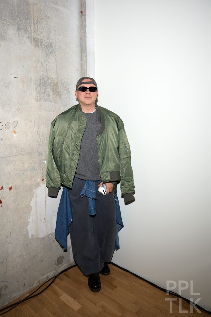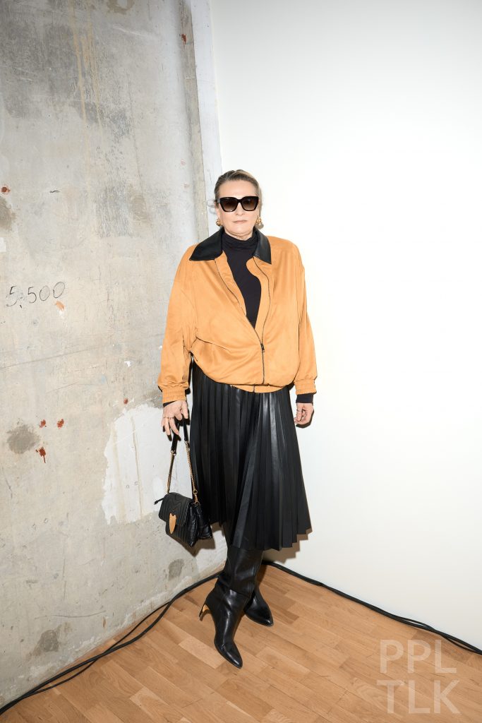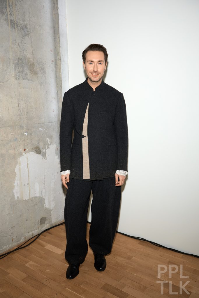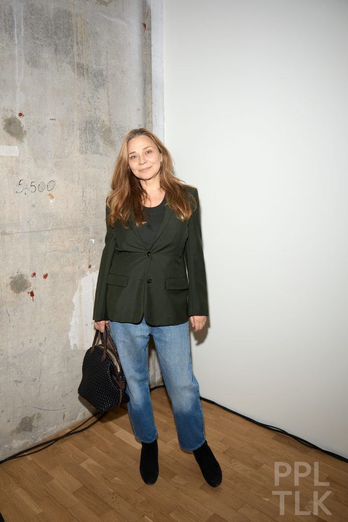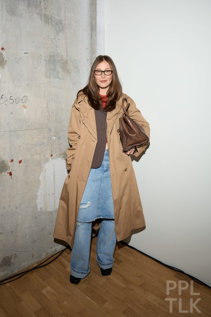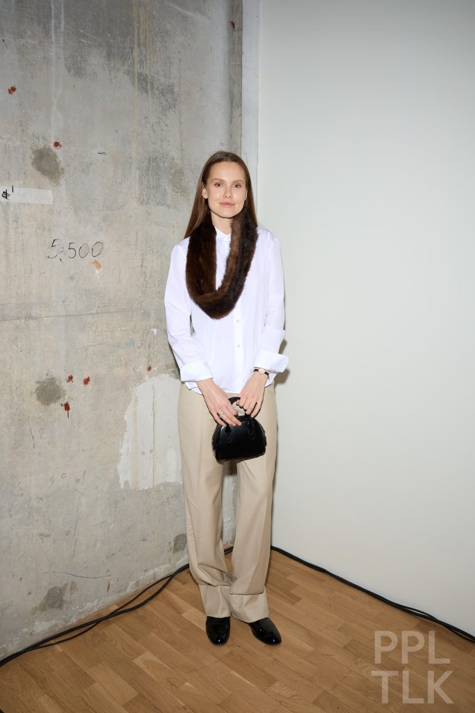 Приглашенных, впрочем, было так много, что в какой-то момент стало невозможно сдать вещи в гардероб. Это мы узнали от Павла Камина, который аргументировал свое появление в верхней одежде. Позже мы в этом убедились, увидев Катю Мухину, стоявшую у входной двери во время показа – стульев попросту не хватило.