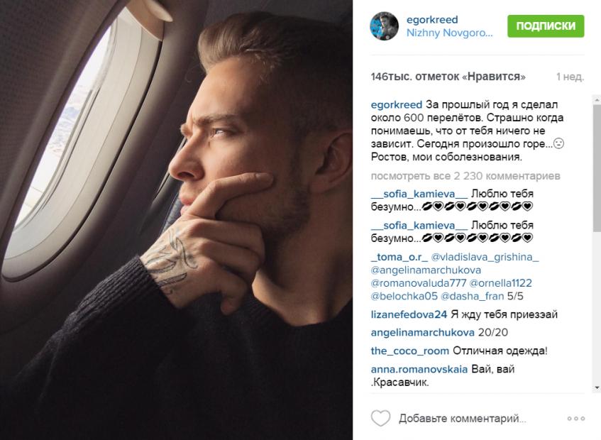 О том, что Егор не сможет дать концерт в Киеве, который был запланирован на 26 марта, сообщил сам музыкант в своем Instagram. Опубликовав фотографию, на которой он стоит на фоне самолетов, певец очень подробно и доходчиво объяснил ситуацию.