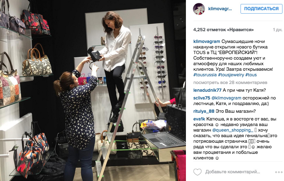 Российская актриса театра и кино Екатерина Климова (37) недавно в четвертый раз стала мамой. Не прошло и месяца после родов, а Екатерина вновь в потрясающей форме. Она опубликовала на своей странице в Instagram снимок с открытия нового бутика выпускающего ювелирные изделия и аксессуары, с которым актриса активно сотрудничает.