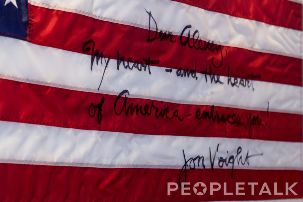 А первым человеком, приехавшим поздравить меня с новосельем, был мой партнер по фильму «Рейган» Джон Войт. И так как я играю будущего президента, в качестве символического жеста он подарил мне флаг своей страны, подписав его на память о нашей совместной работе.