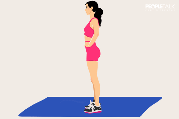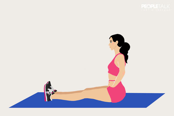 Вытяни ноги вперед – стопы и колени вместе. Сохраняя спину прямой, наклонись к носочкам и задержись в таком положении не менее чем на 30 секунд.