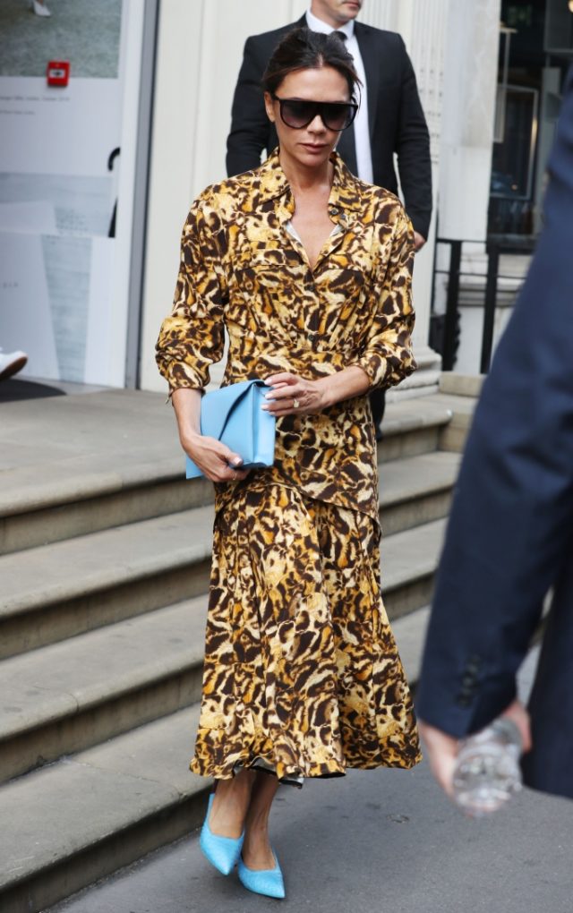 Не все образы Виктории мне нравятся (слишком перегибает палку с игрой в леди), но это образ (благодаря леопарду) смотрится модно.
