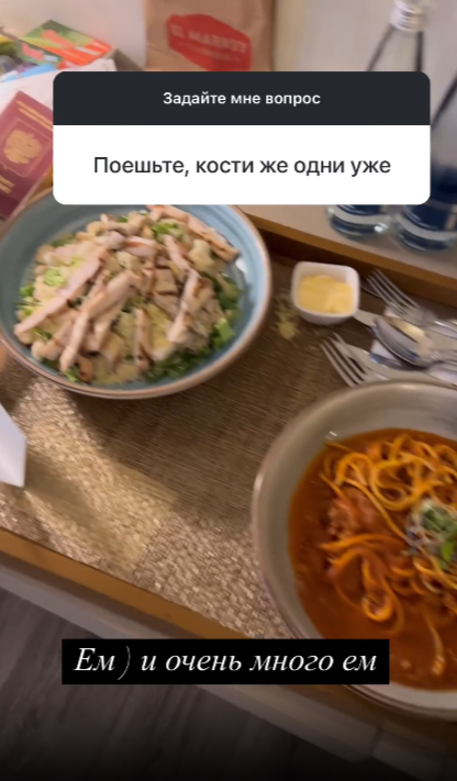 При росте 178 см девушка весит около 50 кг. В этот раз на очередное замечание «Поешьте, кости одни уже» Алана не стала молчать. «Ем. И очень много ем», — написала она, показывая четыре блюда в гостиничном номере.