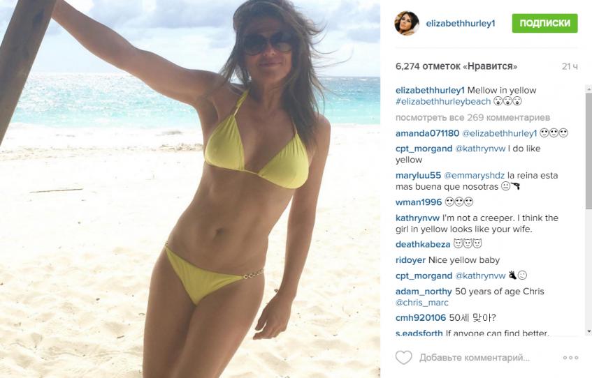 Например, 25 октября Элизабет опубликовала в Instagram снимок, сделанный во время отпуска. На нем звезда предстала в желтом бикини из собственной модной линии и больших солнцезащитных очках. Однако подписчиков интересовал не гардероб артистки, а ее потрясающая форма. На теле звезды нет ни грамма жира, а ее кожа выглядит потрясающе, словно Элизабет 25 лет.