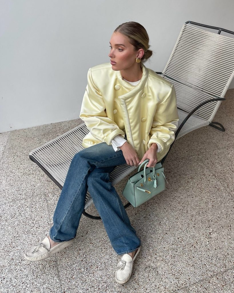 Например, посмотри, какую модель выбирает Эльза Хоск. Звезда отдала предпочтение базовым прямым джинсами в классическом оттенке, которые идеально подчеркивают фигуру и визуально вытягивают ее. Модель носит их с жакетом в нежно-желтом оттенке и трендовыми в этом году макасинами. В холодный сезон такие джинсы можно смело носить с казаками, челси и грубыми ботинками.