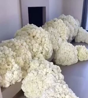 Кстати, недавно звездная пара отмечала ещё один праздник — третью годовщину свадьбы, и Уэст устроил Ким сюрприз: купил множество белых роз и расставил по комнате.