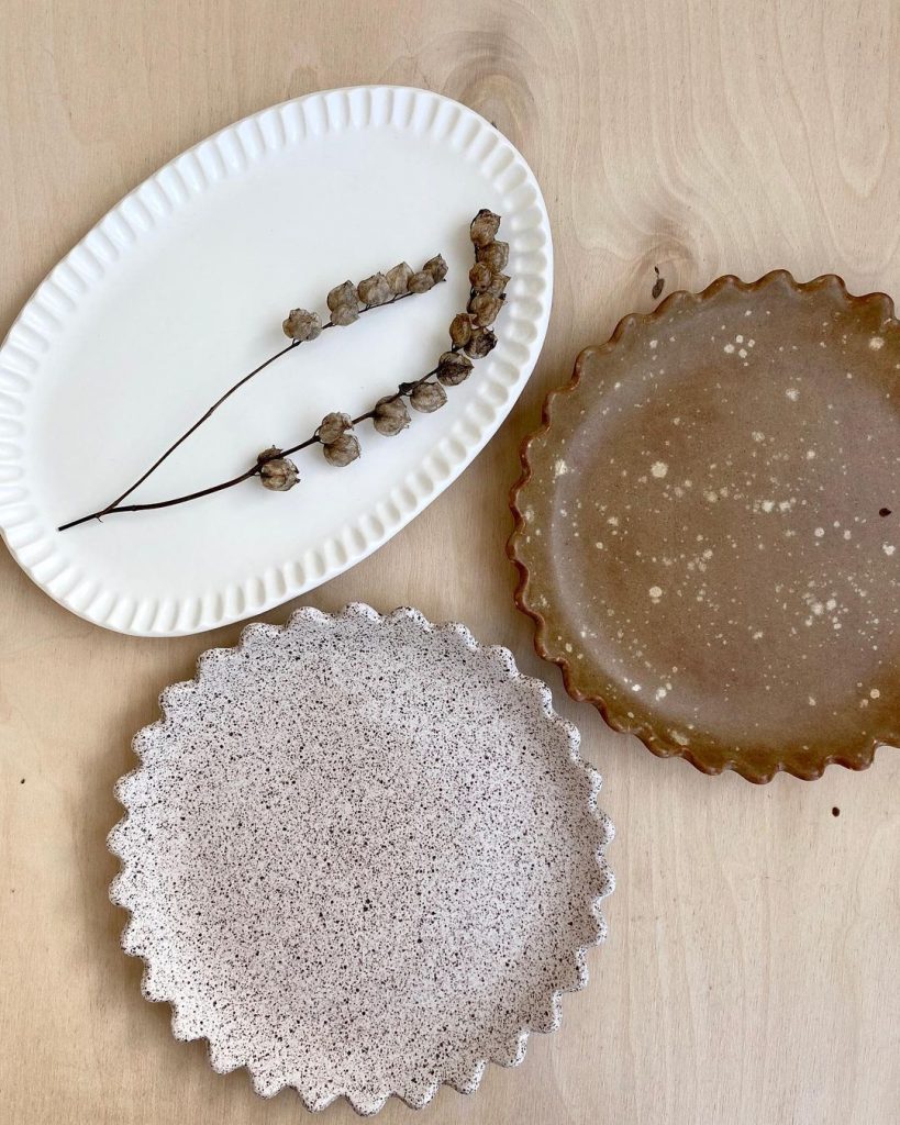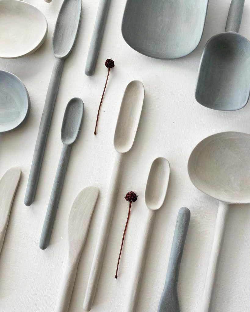 Керамика ручной работы нетипичных форм: тарелки с волнистыми краями, вытянутые ложки, асимметричные боулы. И все в приятных пастельных тонах.