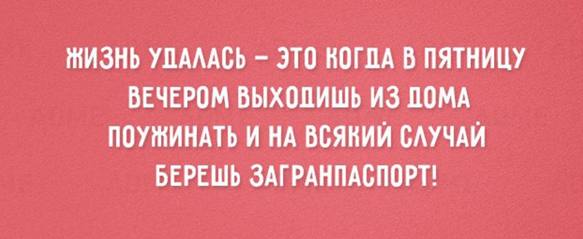 Как гласит народная мудрость, пятница – это маленький праздник. И мы его дождались! А чтобы твой последний рабочий день на этой неделе прошел весело и легко, мы подготовили о нем подборку цитат.