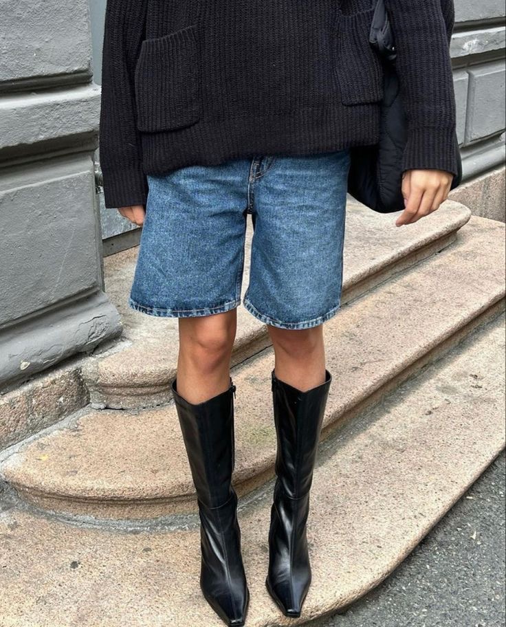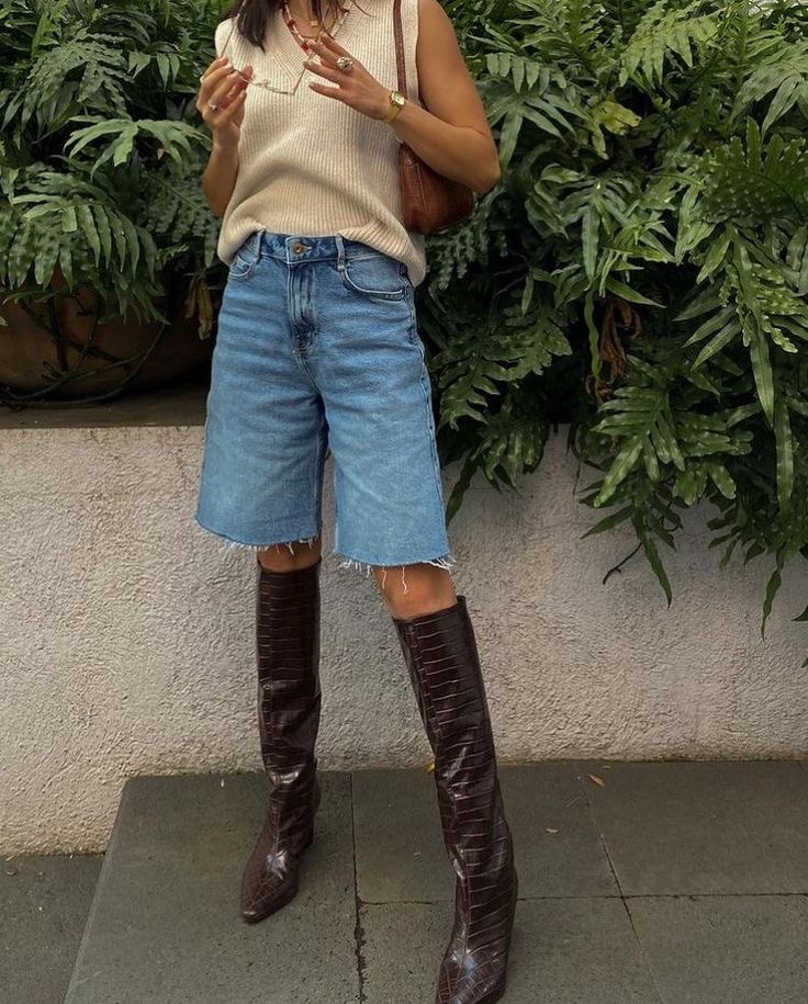 Джинсовые бермуды уже не первый сезон занимают лидирующие позиции в рядах летних трендов, но что если мы скажем, что носить их можно не только в жаркую погоду, но и ранней осенью? «Продлить жизнь» этой модели, в отличие от ее более укороченных конкурентов, довольно просто, если застилизовать с теплыми айтемами, как это делают модные инфлюенсеры. Они предлагают нам носить бермуды с высокими сапогами, вязаными гольфами, кожаными косухами и свитерами. Собрали 10 стильных идей, которые точно стоит сохранить себе на осень.