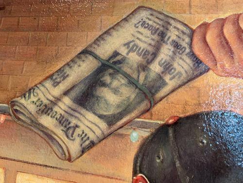 А на газете, которую тот же подросток держит в руках, изображен портрет и имя канадского актера и комика Джона Кэнди — кумира Рейнольдса.