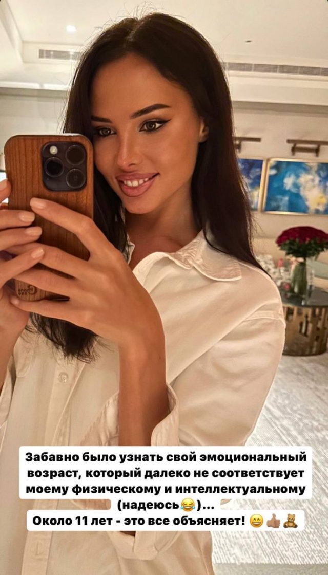 Модель выложила Stories в запрещенной социальной сети, где призналась, что ее эмоциональный возраст (внимание!) — 11 лет. Она также поделилась, что надеется на то, что он «далеко не соответствует ее физическому и интеллектуальному». А дальше она решила пошутить, сказав: «это все объясняет». С этого момента поподробнее…