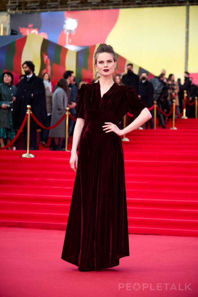 «Бархатное платье темно-рубинового оттенка нравится, да и в целом стиль классный. Однако тут явно не хватило аксессуаров, чтобы выделить весь образ».