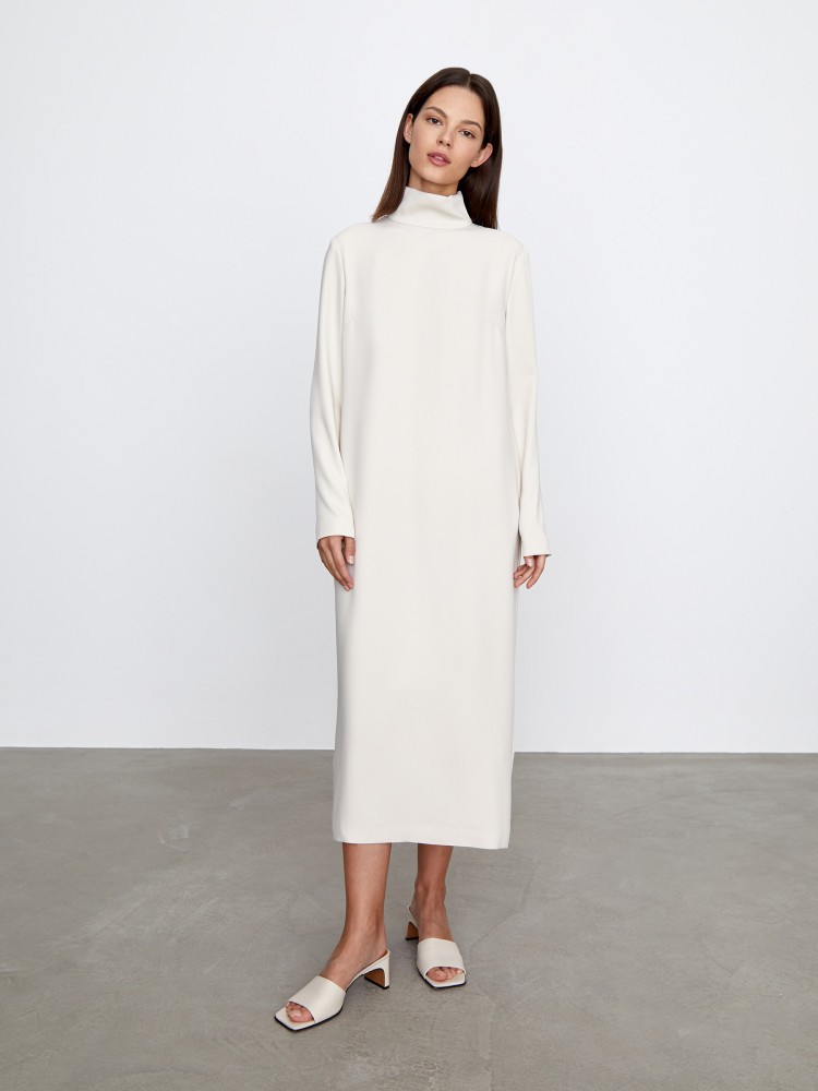 Кстати, мы считаем, что такое платье — мастхэв осеннего гардероба. Носить его можно с кориччневыми казаками и оверсайз тренчем или с дутым клатчем и стеганными балетками.