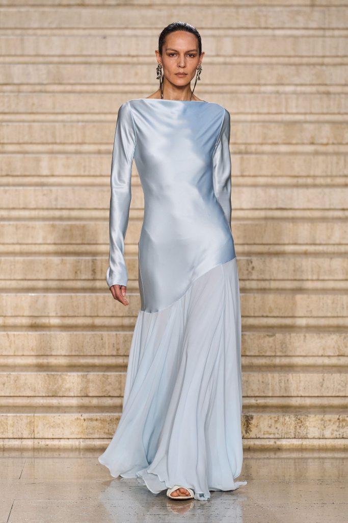 Негласным амбассадором этого цвета, конечно, стоит признать Tom Ford, который уже доказал, что с оттенками он умеет работать не хуже Prada. В последнее время Ice Blue все чаще появляется и в коллекциях других модных домов – его уже заметили у Diesel, Khaite и Comme des Garçons. Стоит отметить, что айтемы этого цвета могут быть совершенно разными: от жакетов и платьев до костюмов и верхней одежды.