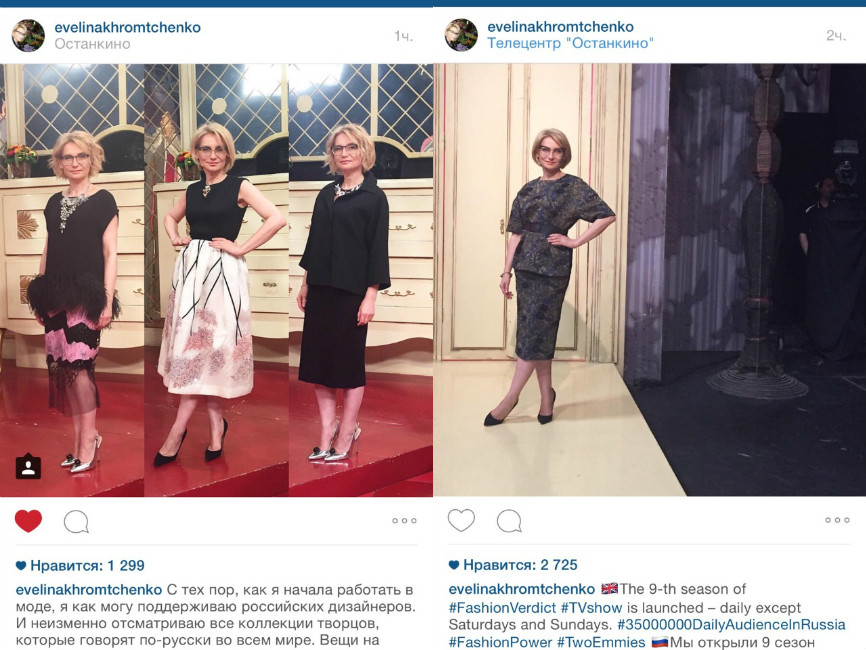 На своей странице в Instagram она раскрыла секрет съемок программы "Модный приговор". Оказывается, за 4 дня снимается целых 16 выпусков шоу! А для этого у Эвелины должно быть сразу 16 разных образов, в которых было бы комфортно на съемочной площадке.