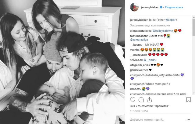 Вчера Джереми Бибер (43), отец Джастина, выложил на своей страничке фотографию с детьми и написал «To be Father #Bieber’s», что переводится как «быть отцом Бибера». Но если поменять три слова местами, то получится фраза «Бибер скоро будет отцом».