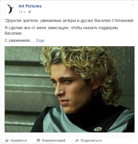 На официальной странице продюсерской компании Бондарчука Art Pictures в Facebook появилось заявление режиссера: «Дорогие зрители, уважаемые актеры и друзья Василия Степанова! Я сделаю все от меня зависящее, чтобы оказать поддержку Василию. С уважением, Федор Бондарчук».