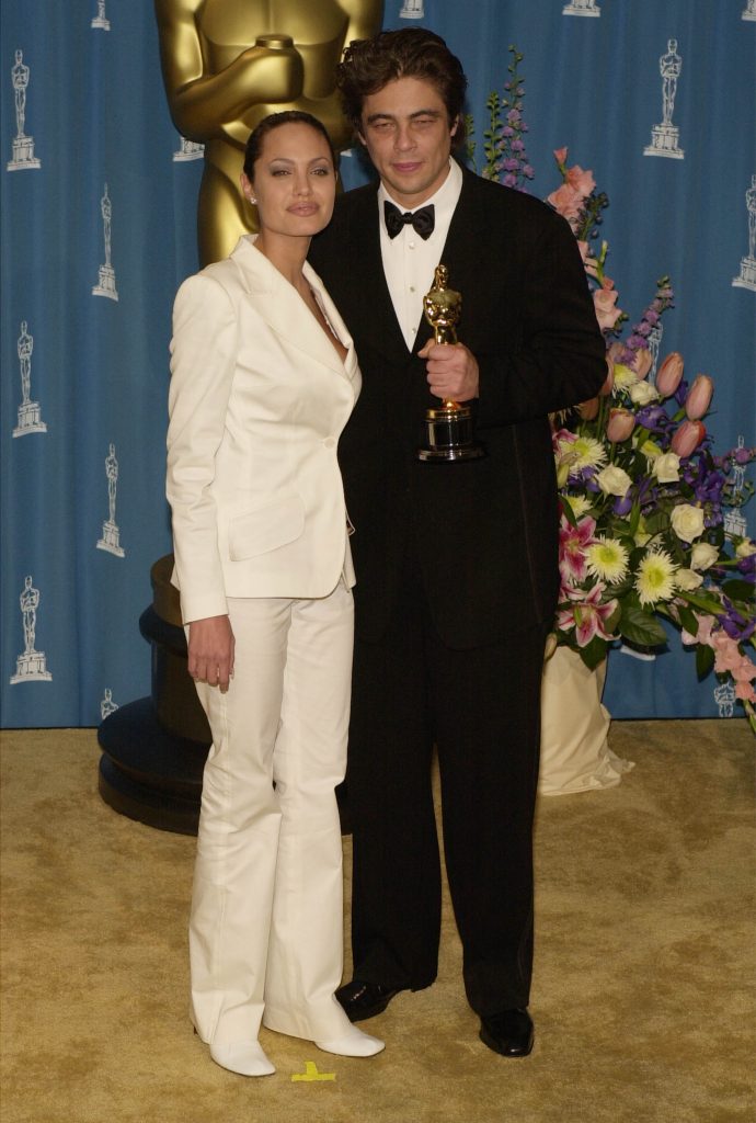 В начале нулевых Джоли начинает встречаться с Билли Бобом Торнтоном, но по-прежнему остается верна кожаным брюкам и казакам. Правда, со своим стилем актриса все-таки экспериментировала. Например, на церемонию вручения премии «Оскар» в 2000 году она пришла в готическом наряде, который напоминал образ Мортиши Аддамс. Но на премьере фильма «Лара Крофт: Расхитительница гробниц» Джоли снова вернулась к привычному дерзкому аутфиту.