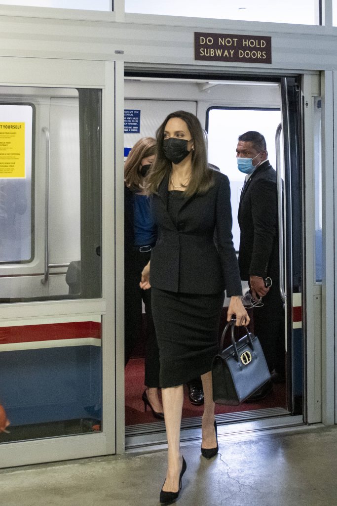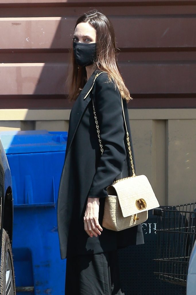 Сегодня Джоли нечасто появляется на красных дорожках, поэтому нам остается только рассматривать ее повседневные аутфиты. Актриса по-прежнему делает ставку на классический черный: от платьев макси до юбок, которые часто дополняет двубортными тренчами.