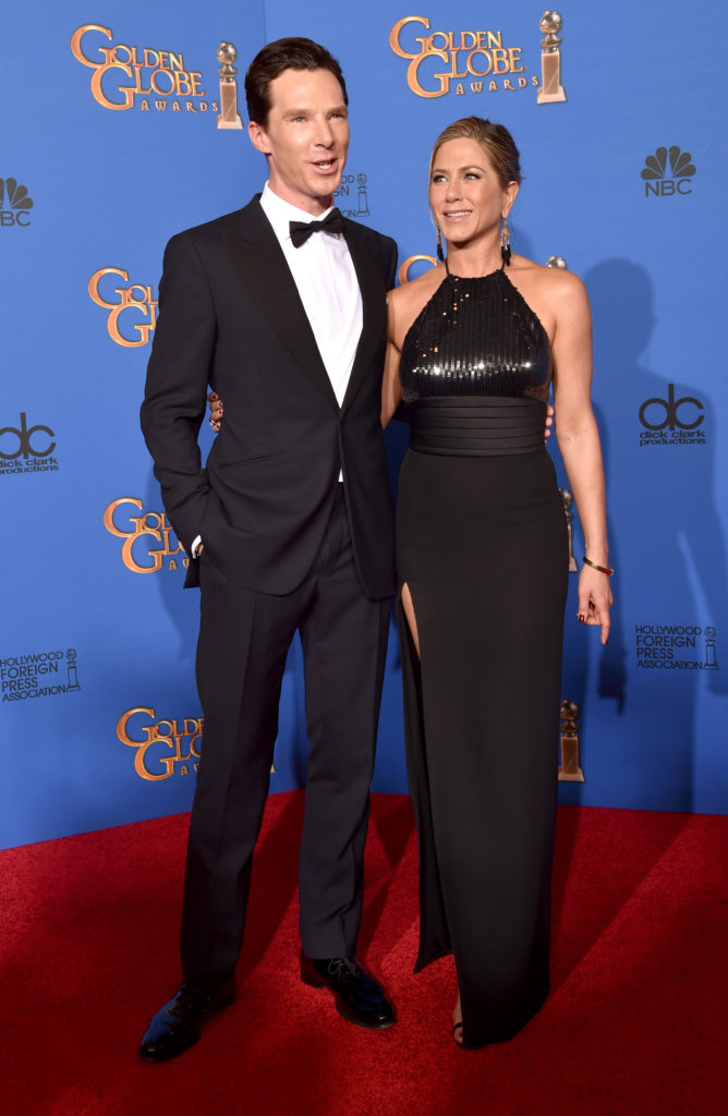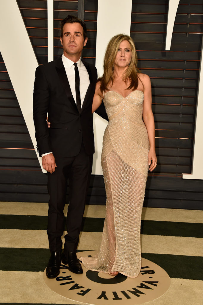 Новый роман – новые изменения в стиле Энистон. После свадьбы с Джастином Теру Дженнифер вернула в свой гардероб длину макси, но не забыла про глубокие вырезы. Она появлялась на красных дорожках в золотом John Galliano, в черном Valentino с разрезом и в мерцающем полупрозрачном Versace.