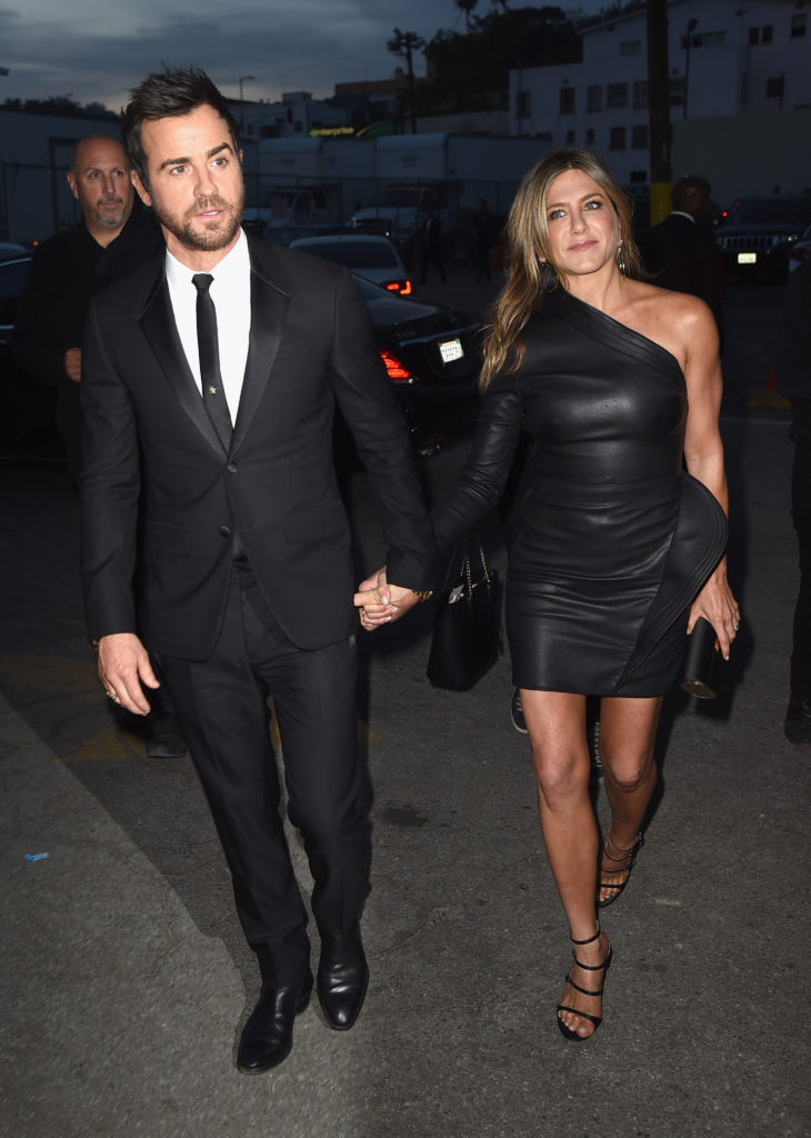 Спустя несколько недель после расставания с Брэдом Питтом Дженнифер Энистон приходит на красную дорожку в роскошном серебристом образе, который многие назвали «платьем мести». С тех пор наступает эпоха откровенных выходов актрисы: от ультракороткого черного мини до полупрозрачного блестящего платья.
