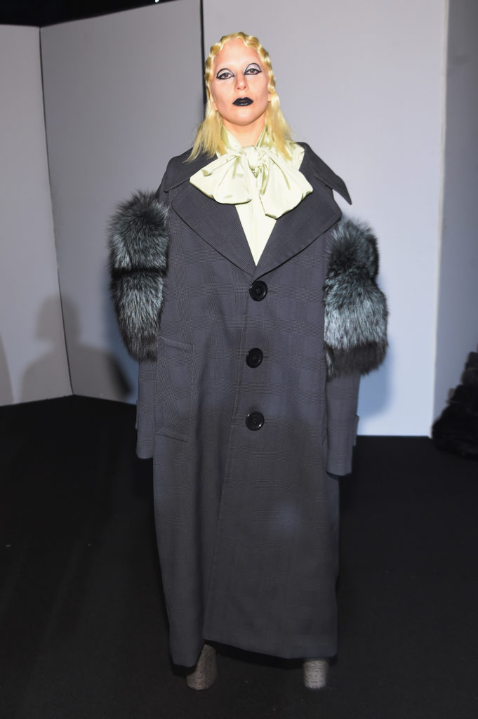 Но со временем Гага отошла от образа безумной дивы, сменив костюм с аномальными плечами на платье из кутюрной коллекции Schiaparelli.