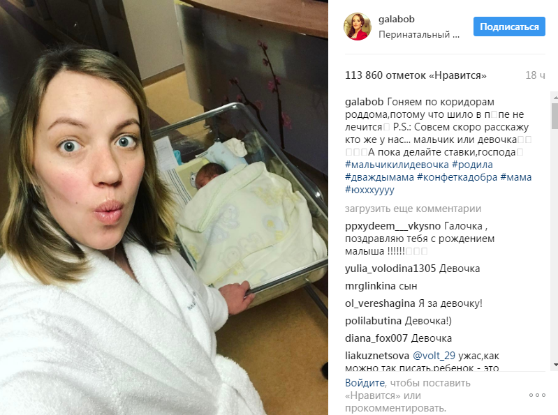 Чуть позже Галина рассказала, что роды прошли успешно, а вчера вечером поделилась первым фото малыша и предложила угадать, кто у нее родился: мальчик или девочка?