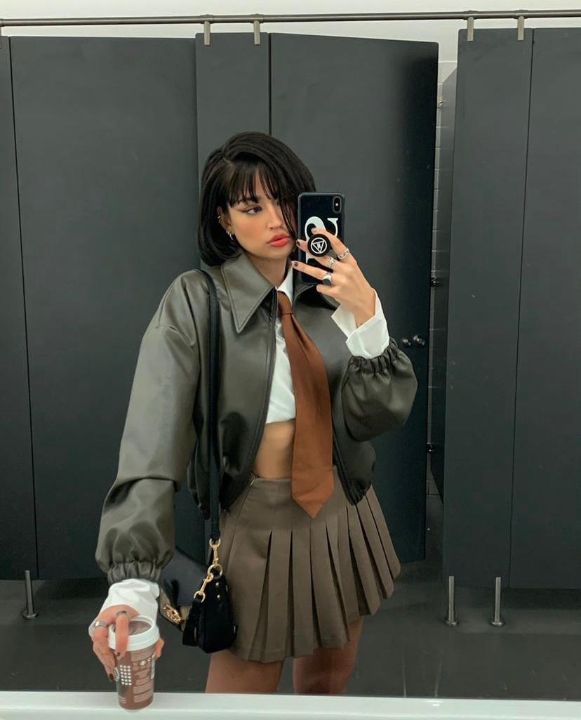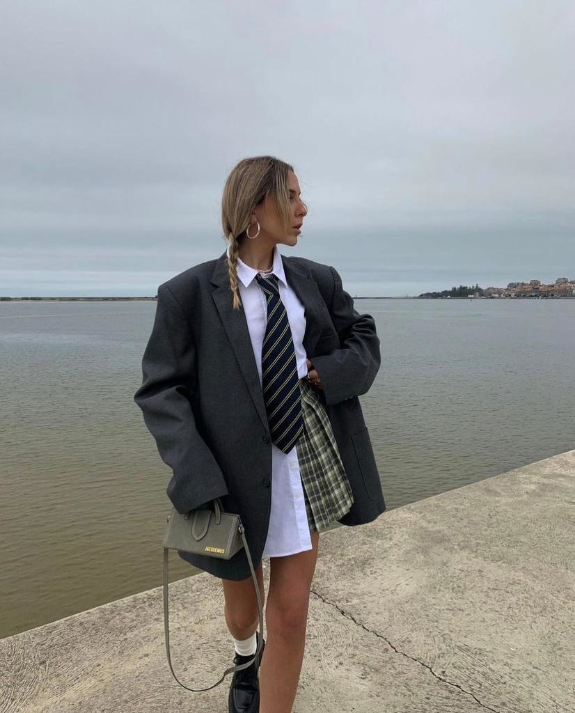 Сочетать этот аксессуар можно по-разному. Например, делать ставки на оверсайз брючный костюм или вдохновиться образом Беллы Хадид на показе 1017 ALYX 9SM и носить его в дуэте с кожаной курткой. Кстати, модные блогеры предлагают стилизовать галстук с мини-юбкой и бомбером (в идеале дополнить аутфит грубыми ботинками).