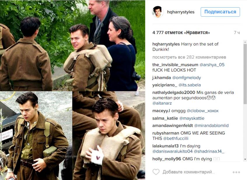 Гарри Стайлз с короткими волосами и в военной форме — загляденье! Историческую картину «Дюнкерк» снимает режиссер Кристофер Нолан (45). Действие происходит в начале Второй мировой войны. В ходе дюнкеркской операции спасли три тысячи солдат, которые были зажаты между морем и вражескими войсками. Фильм выйдет в прокат в июле следующего года.