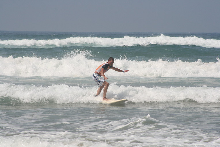 Опираясь на собственный опыт обучения серфингу, могу открыть маленький секрет. Тебе понадобится максимум два урока, даже если ты не очень хорошо плаваешь или боишься. Техника проста. Все, что от тебя требуется, это опереться на доску под правильным углом, привстать и продержаться хотя бы первые три секунды, а дальше удержать равновесие будет нетрудно. К тому же доска, которая предназначена для новичков, имеет шершавое покрытие, поэтому поскользнуться на ней невозможно. По сути, все, что делает тренер, − рассказывает, в какую сторону лучше падать, если ты понимаешь, что не удержишься, толкает тебя на волны и кричит: «Вставай!» Так что тут, как и в любом другом деле, все приходит с опытом.