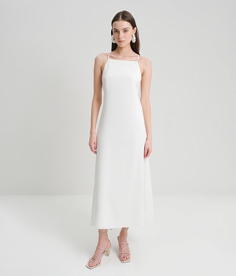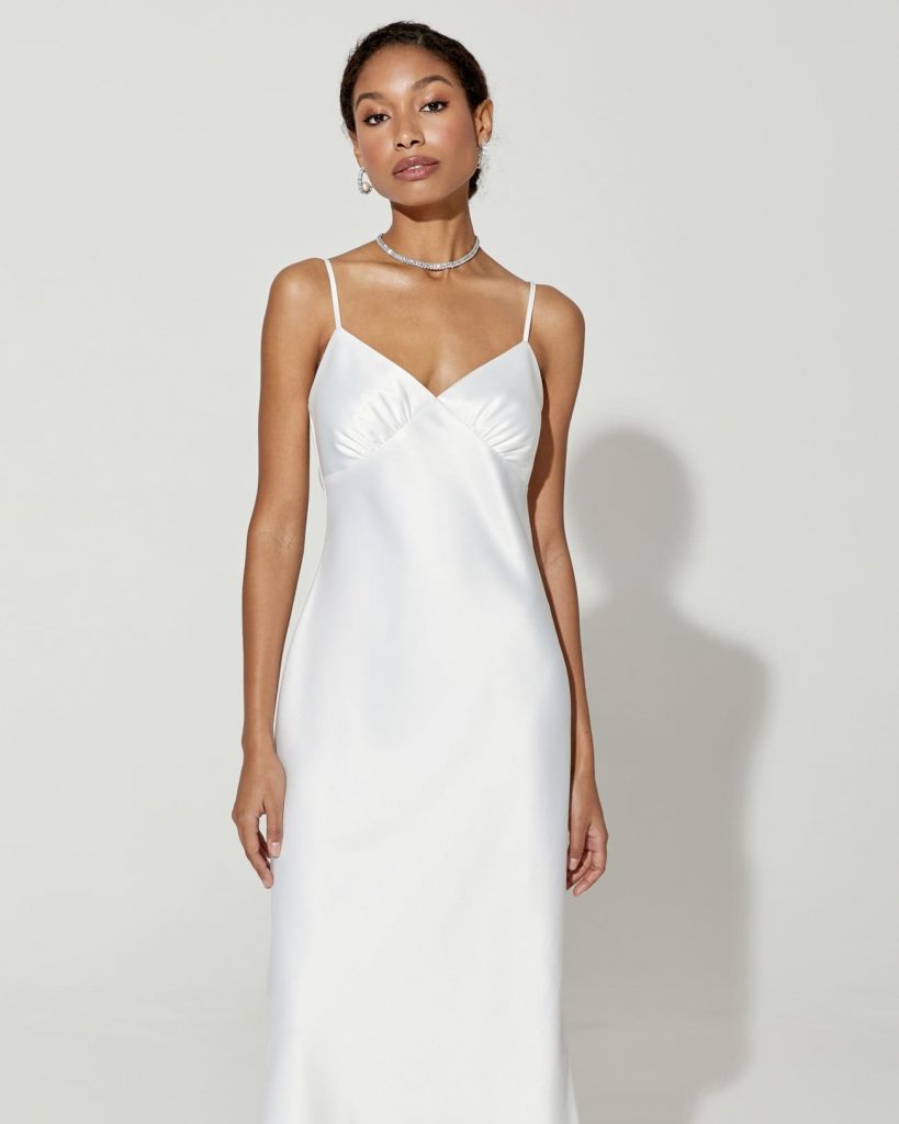Белое атласное платье на коктейльной вечеринке в Нью-Йорке