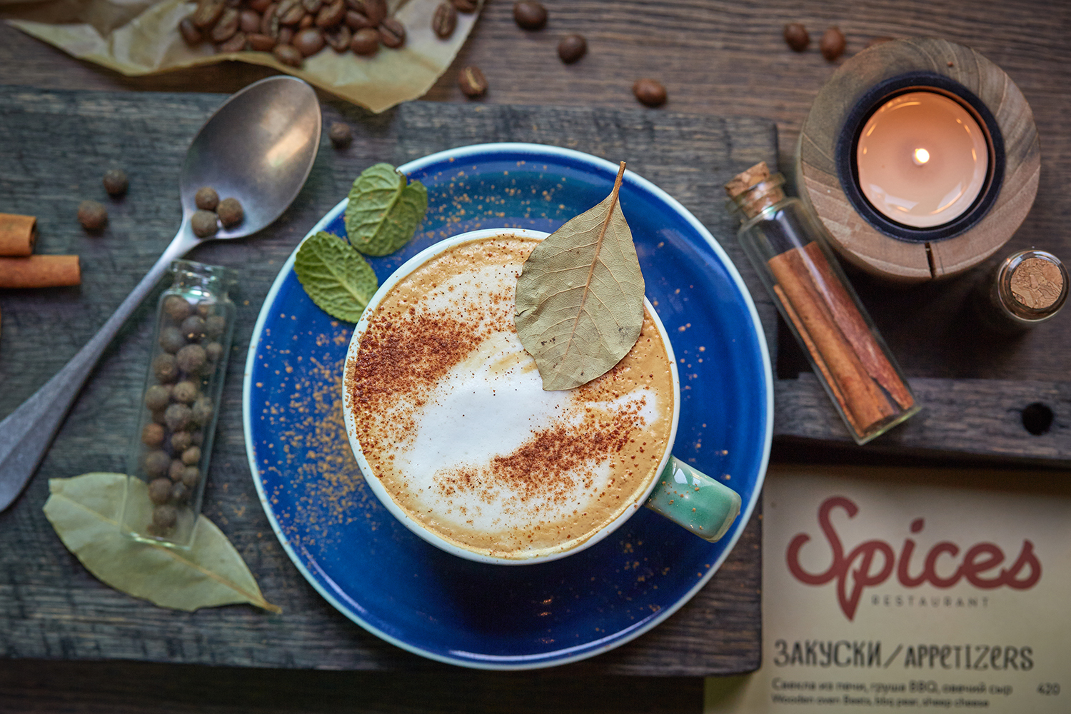 Совсем недавно в Камергерском переулке открылся ресторан Spices, где обязательно нужно попробовать напитки на основе кофе. Spicy капучино (200 р.) с сиропом из гвоздики, лаврового листа и душистого перца. Christmas капучино (200 р.) с сиропом из мандарина и нотками кардамона. Или «Халвичный Рафаэль» (250 р.) на основе корицы с домашним сиропом из подсоленной халвы.