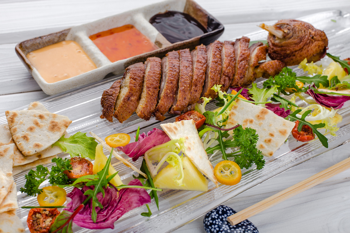 К Новому году (28 января) по восточному календарю шеф-повар Yoko приготовил фермерскую утку (2550 р.). Птица маринуется в ароматных специях, натирается медом, вялится и запекается. Подается эта красота с тремя домашними соусами (мятно-сливовый, чили с апельсином и красный тофу), пшеничной лепешкой и вялеными помидорами.
