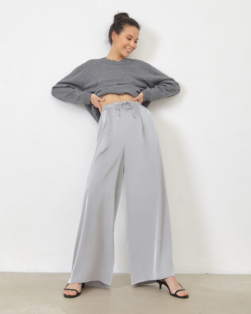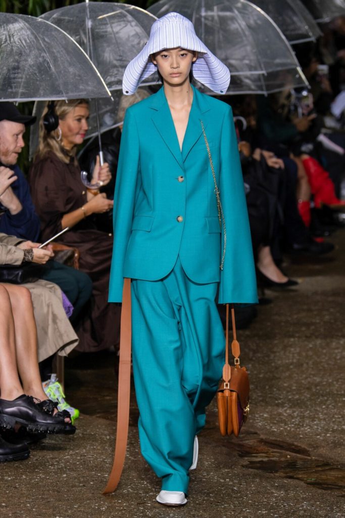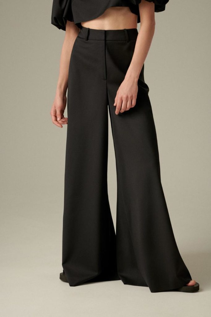 Мы влюбились в брюки-палаццо после показа Valentino. Пьерпаоло Пиччоли предлагает носить модель с прозрачным топом и пиджаком с мужского плеча.