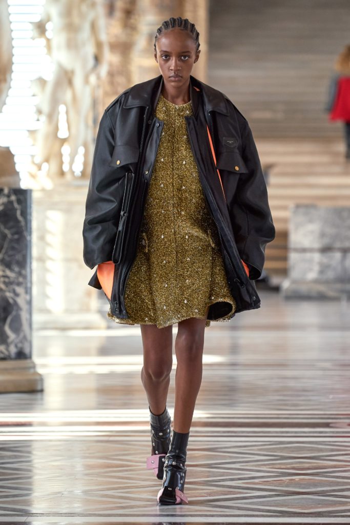 Вообще, 2021 год возродил моду на все блестящее. Как доказательство – показы Celine и Gucci. Так что смело выбирай платье в таком стиле на выпускной вечер. А если поверх него ты накинешь байкерский бомбер, как на показе Louis Vuitton, образ станет круче в несколько раз.
