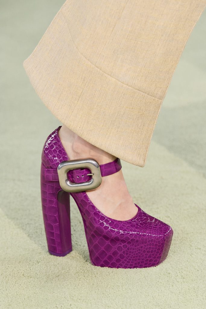 В этом сезоне дизайнеры как будто советуют нам «быть выше этого» и предлагают переобуться в туфли и сапоги на платформе. Самой яркой парой, которая засветилась, кажется, на всех красных дорожках, стали ярко-розовые туфли Valentino. Пьерпаоло Пиччоли представил их в коллекции осень-зима/2022. Не менее достойный вариант получится у Донателлы Версаче, а вот креативный директор Thom Browne сделал акцент на сюрреализм и не прогадал.