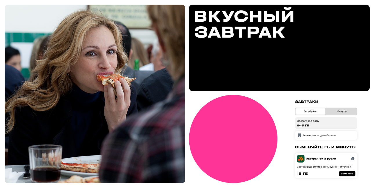 «Завтрак съешь сам, обед подели с другом, а ужин отдай врагу». Автором этой фразы считается Александр Суворов, который точно знал о пользе утреннего приема пищи. Завтраки лучше усваиваются, поддерживают иммунитет, а также улучшают память и внимание. Лично я никогда не откладываю первый прием пищи до обеда, потому что знаю, что организм начнет накапливать питательные вещества про запас. Именно поэтому вместе с утренним кофе закажу традиционный завтрак во «Вкусно – и точка». За него я заплачу всего 2 рубля и 15 ГБ. Главное, успеть до 10 утра.